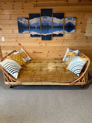 First up, we said goodbye to the tired decor and hello to nature-inspired artwork that brought the outdoors in with a fresh, modern vibe. The tongue-and-groove stayed (because what’s a cabin without it?), but everything else got a major upgrade. Furniture finds from Facebook Marketplace, soft new bedding, fresh lighting, and—drumroll—a fully remodeled kitchen with an actual dishwasher transformed Nord Haven into a space you’ll never want to leave. Now, it’s the perfect spot to kick back, relax, and soak up that Northwoods magic—no saggy mattresses required!